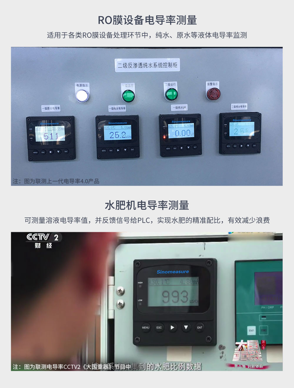 儀器用于工業上電導/比電阻/鹽度/溶解固體總量及溫度的測量,如: 廢水,純凈水,環境監測,食品生產過程等,儀器可以盤面安 裝,壁掛安裝,管路安裝。儀器提供 2 路電流輸出,最大負載為 500Ω, 儀器提供 3 路控制用繼電器,繼電器最大承受電壓及電流為 5A/250VAC 或 5A/30VDC。