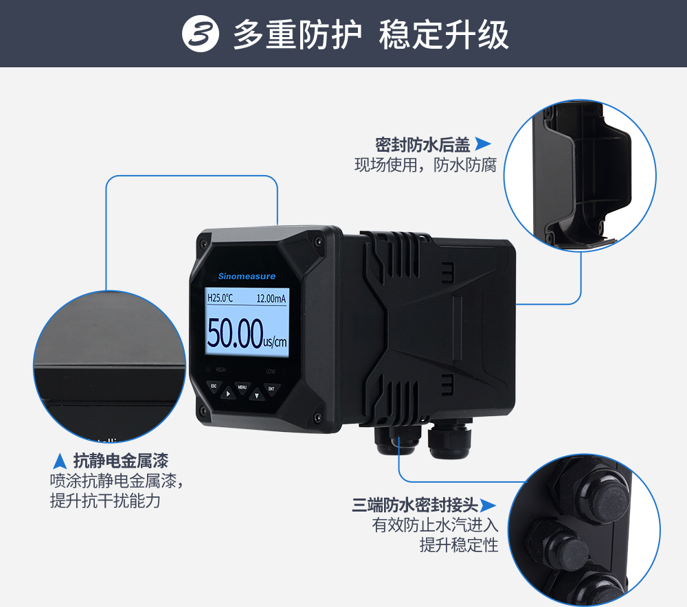 SIN-TDS210工業電導率儀表,可對各種工業用水的電導率(TDS)值進行連續測量和控制,本裝置廣泛應用于科學實驗裝備、化工、制藥、環保、冶金、造紙、食品、飲料及供水等行業。根據水工業的環境和特點結合國際供電標準,考慮了特殊環境的電氣設計規范,增加了220VAC供電。